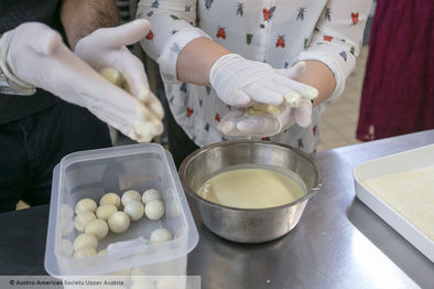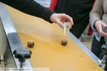 This year, we met again at Jindrak’s, where we rolled and glazed pralines, after having received an introduction by Leo Jindrak himself. On top of that, we got to take home a bag of these delicious chocolate-balls.
